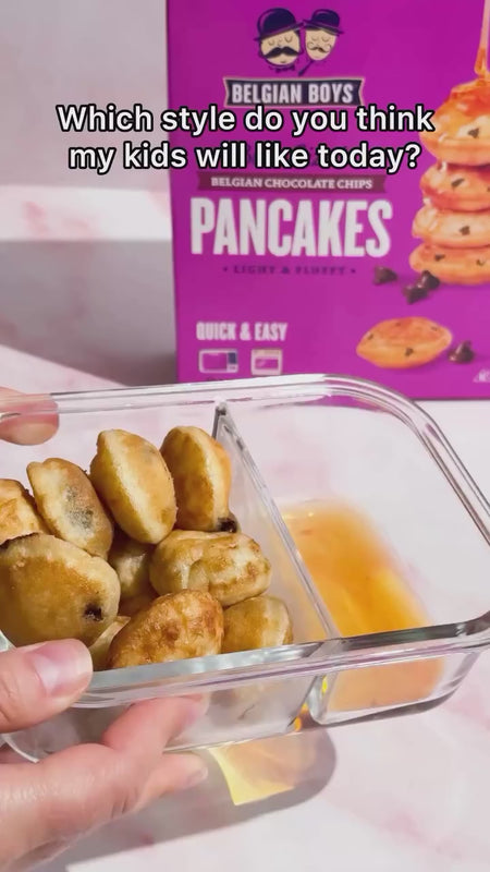 Fluffy, light, and loaded with real Belgian chocolate chips! These heat-and-eat pancakes are made with just the right sweetness and ready whenever you are. Pop them in the microwave, toss them in a lunchbox, or dress them up with your favorite toppings—it doesn’t get easier (or tastier) than this.