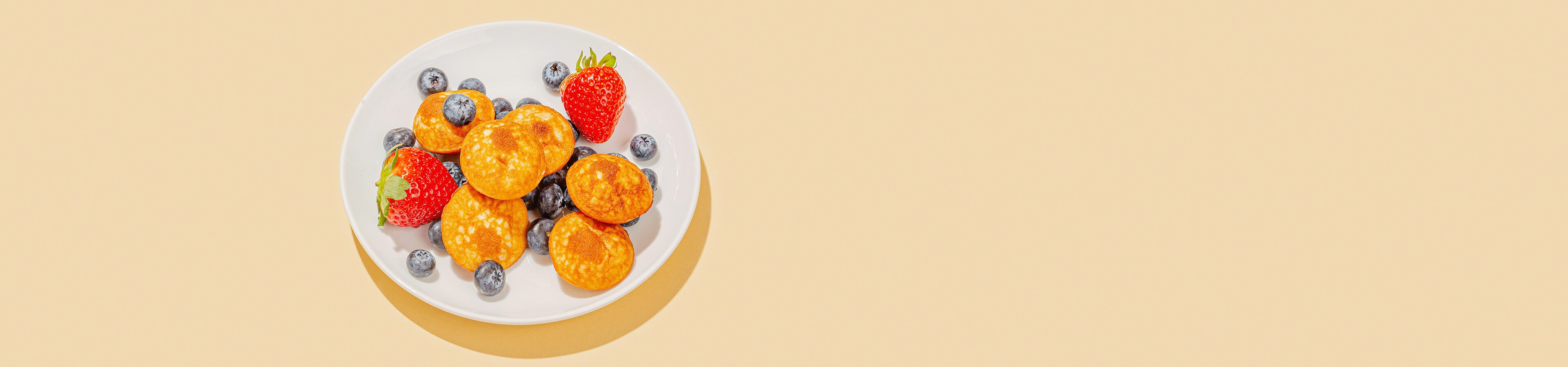 Our Bite-Sized Pancakes are fluffy, airy, and irresistible! Made with a touch of sweetness, these heat-and-eat pancakes are the perfect size for snacking or packing. Whether you eat them on the go or top them up, these tasty morsels are a quick and easy solution for any time of the day.
