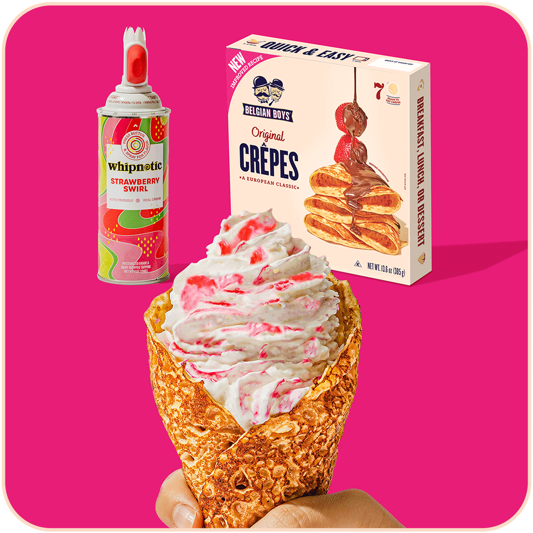 Belgian Boys Crepes and Whipnotic Strawberry Swirl whipped cream